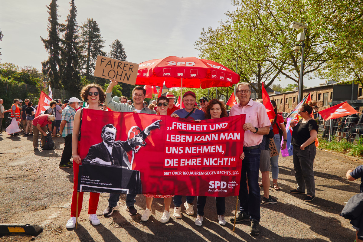 In Aschaffenburg ist die SPD immer Seite an Seite mit den Beschäftigten und den Gewerkschaften am 1. Mai auf der Straße, denn wir wissen, dass der Kampf für gute Arbeitsbedingungen und faire Löhne nie endet.