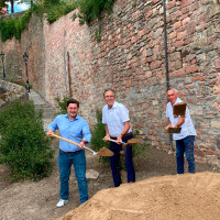 Mit dem feierlichen Spatenstich werden nun die Bauarbeiten für den Aufzug unterhalb des Schloss Johannisburg beginnen.
