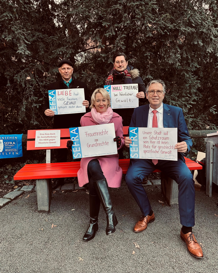Am Internationalen Tag gegen Gewalt an Frauen und Mädchen wurde im Schöntal als Symbol gegen geschlechtsspezifische Gewalt eine rote Bank aufgestellt. Mit diesem Symbol hat sich die Stadt Aschaffenburg die italienische Stadt Perugia zum Vorbild genommen, welche bereits 2016 eine solche Bank auf einem öffentlichen Platz aufgestellt hatte.