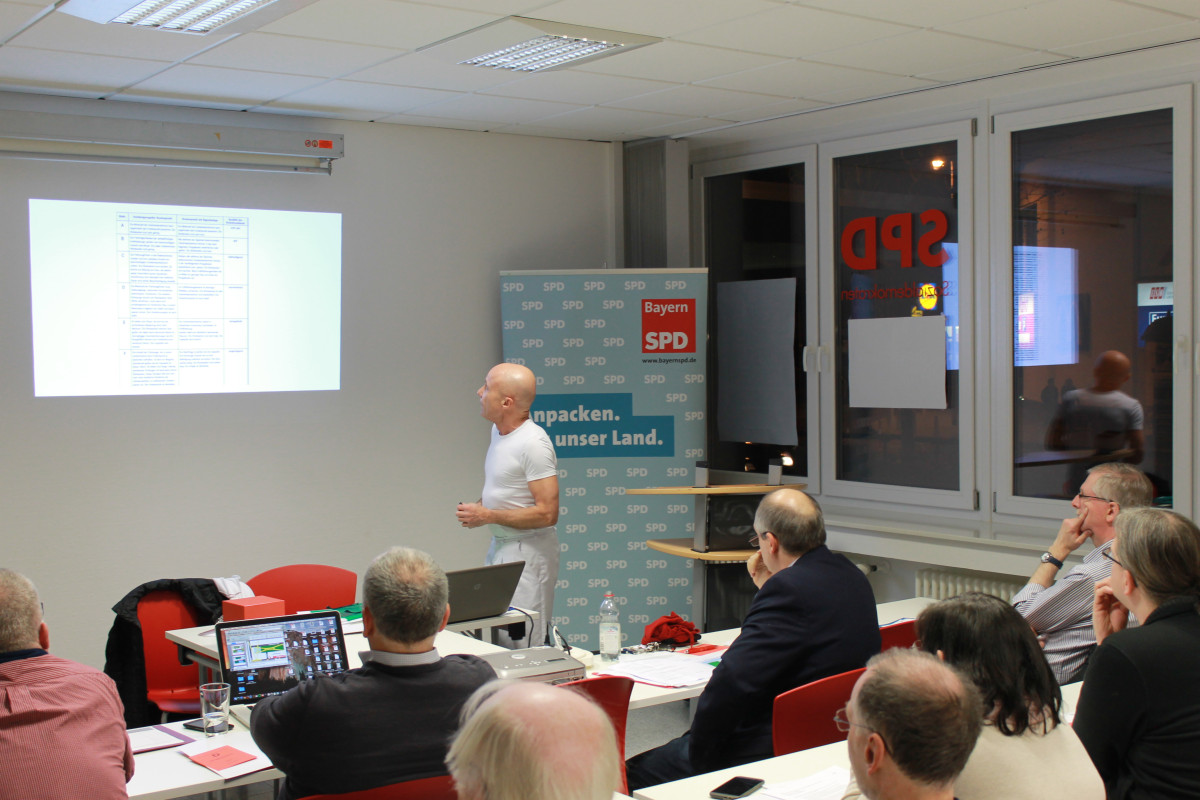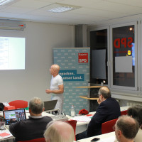 Die anwesenden Delegierten aus den Aschaffenburger Ortsvereinen diskutierten engagiert über die verschiedenen Ansätze für eine Verbesserung der Verkehrssituation. Konsens bestand sehr schnell darin, dass der Hafen dringend ein internes Verkehrskonzept vorlegen muss. Ebenso wurde allgemein eine Anbindung des Hafens an den ÖPNV gefordert, damit die im Hafen Beschäftigten auch mit dem öffentlichen Nahverkehr zur Arbeit fahren können. Die Notwendigkeit des vierspurigen Ausbaus der B26 zwischen B469 und Stadtgrenze, wie er im neuen Bundesverkehrswegeplan vorgesehen ist, wurde allgemein anerkannt.