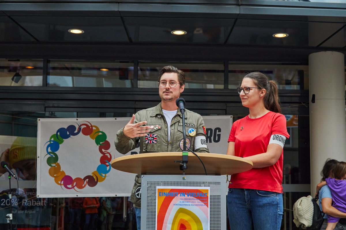 Am 3. Oktober 2023, dem Tag der Deutschen Einheit, fand in Aschaffenburg eine beeindruckende Kundgebung unter dem Motto “Einheit in Vielfalt” statt. Über 300 engagierte Bürgerinnen und Bürger versammelten sich in der Herstallstraße, um ein klares Signal zu setzen: Aschaffenburg ist eine bunte, vielfältige und tolerante Stadt, die sich gegen Spaltung, Hass und Extremismus wehrt. Neben der Herstallstraße hatte das überparteiliche Bündnis „Aschaffenburg ist bunt“ an weiteren Standorten in der Stadt zu Kundgebungen und Aktionen aufgerufen.